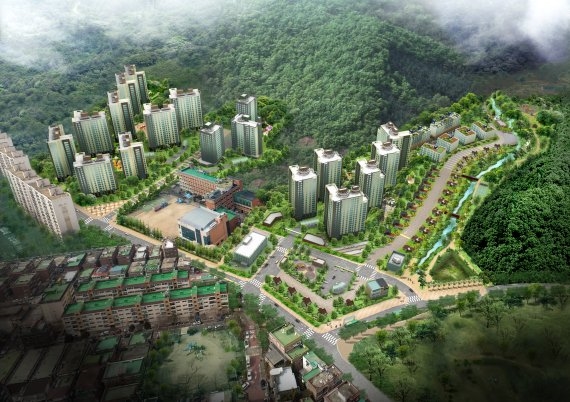 경기주택도시공사(GH)가 스마트 안전장비 시스템을 도입해 건설현장 안전 체계를 갖추고 있는 경기도 안양시 관양고 주변 개발사업 현장 조감도. 사진=GH