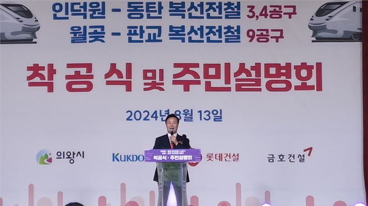 의왕시민들의 오랜 숙원사업이었던 인덕원~동탄, 월곶~판교 복선전철 사업이 13일 의왕시청소년수련관 대강당에서 구간 착공식을 갖고 본격적인 공사 추진에 나섰다.