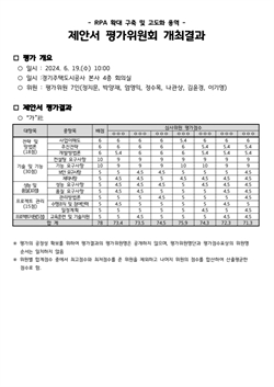 한편 GH는 지난 6월 RPA 확대 구축 및 고도화 용역 제안서에 대한 평가위원회의 평가를 거친 바 있다. 전략 및 방법론, 기술 및 기능, 성능 및 품질, 프로젝트 관리, 프로젝트 지원 등 5개 분야로 나눠 7명의 평가위원이 평가한 결과 78점 만점에 73.6점을 받아 만점에 가까운 평가점수를 획득한 바 있다.
