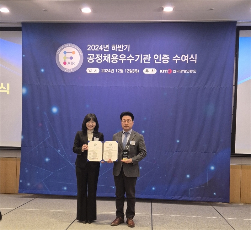 경기주택도시공사(GH)가 공정채용 성과를 인정받아 한국경영인증원(KMR)으로부터 2년 연속 공정채용 우수기관으로 인증 받았다고 12일 밝혔다.
