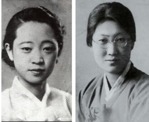 젊은 시절의 노천명과 모윤숙. 두 사람은 이화여전 선후배였지만, 친일 행적에도 불구하고 광복 후 이승만 대통령 배려로 처벌을 면했다. 6.25 전쟁당시에 노천명은 모윤숙을 인민군에게 밀고하는 등 부역자로 재판을 받아 20년 형을 받았지만, 6개월만에 특별 사면으로 풀려났다.