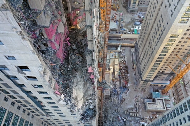 2022년 1월 붕괴사고가 난 광주화정아파트 공사현장의 사고 모습. 사진=연합뉴스